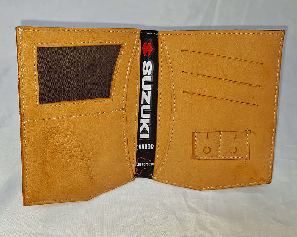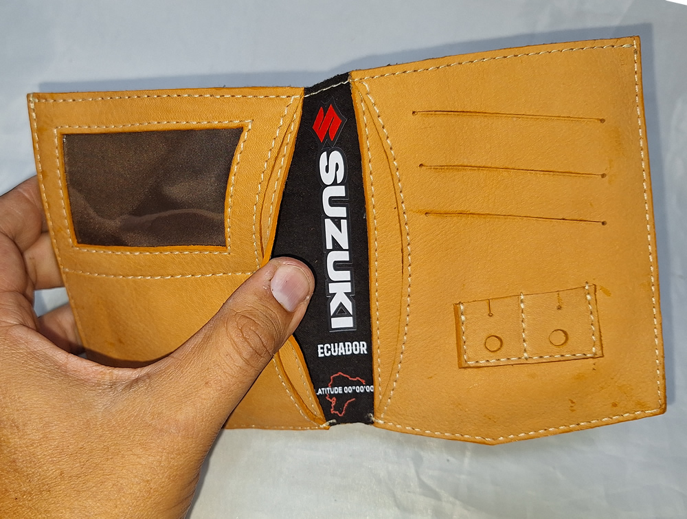 Tarjetas: 1 ventana para fotos/cedula 1 bolsillo para tarjeta banco, 3 bolsillos para tarjetas adicionales